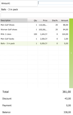 If OK is pressed, the items are added to the POS Transaction and the 20% discount defined in the Benefits FastTab has been applied: